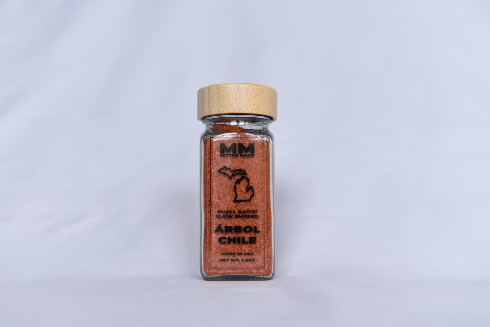 Slow-smoked Árbol chili, prized for its cayenne-like warmth and deeper character—rich, earthy, and subtly dry with a strong and lingering heat.